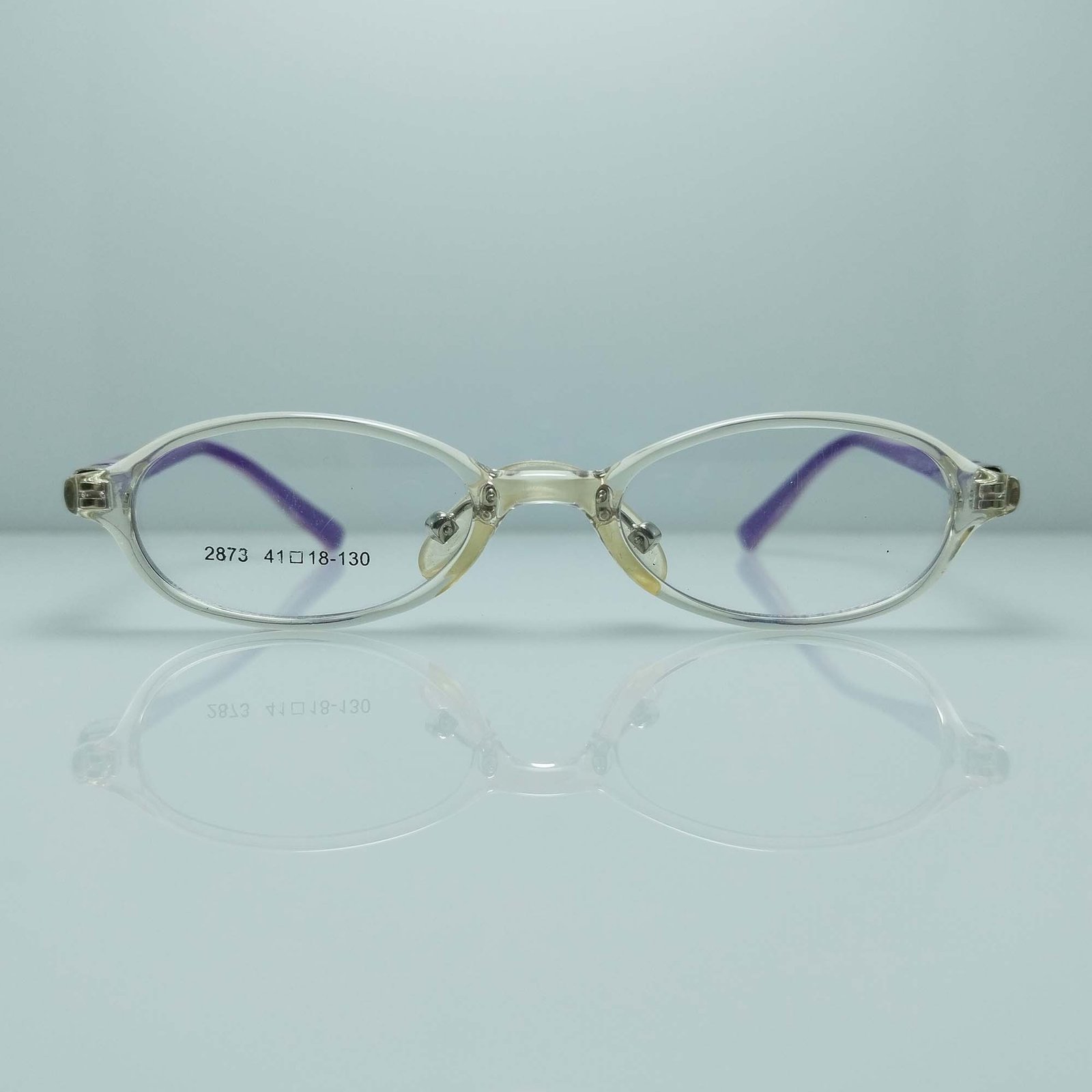 Step up your style with this transparent white and purple semi-round frame made from soft, flexible silicon. A perfect mix of comfort and color with size 41*18-130.
